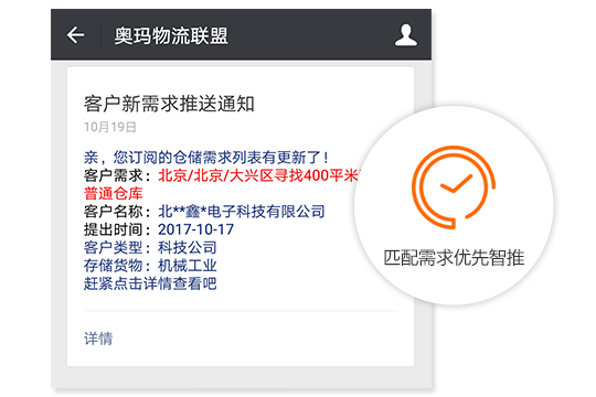 倉儲聯(lián)盟以平臺物流大數(shù)據(jù)為基礎(chǔ),結(jié)合微信,新推出的一款手機版?zhèn)}儲物流信息智能營銷工具,是您找倉儲業(yè)務(wù)或找靠譜倉庫必備的移動端物流神器!